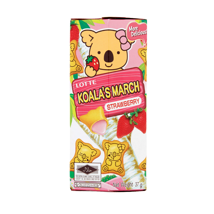Knusprige Koala-Kekse mit cremiger Erdbeerfüllung. Beliebt bei Jung und Alt – kultiger Snack aus Japan. Verkaufseinheit: 6 Packungen à 37 g.